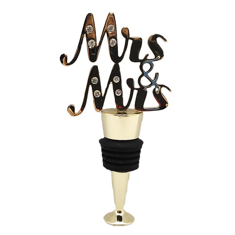 Tapón de vino de señora y señora de aleación de zinc chapado en oro-Tapón de botella de boda lesbiana tachonado de cristal, regalo de despedida de soltera