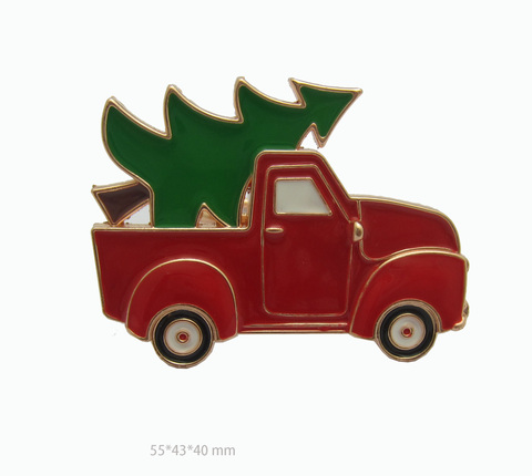 Servilletero navideño de aleación de zinc-Camioneta roja con diseño de árbol de Navidad para decoración de mesa de vacaciones