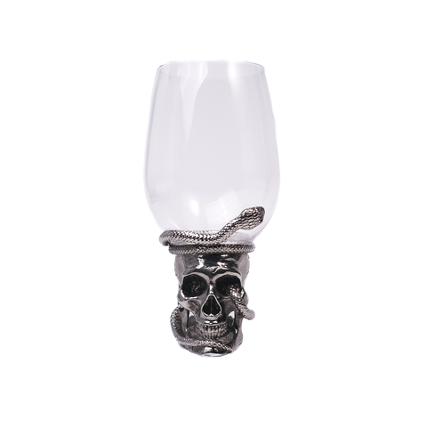 Diseño clásico Halloween Temática Calavera Serpiente Patas cortas Copa de vino personalizada Liquidación de inventario con novedad Tallo corto